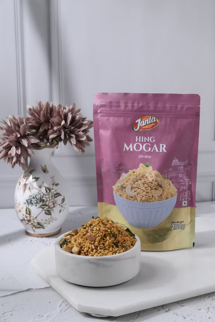 Hing Mogar from our namkeen range is crafted using authentic recipes and premium ingredients. A delightful treat that blends tradition with flavor.